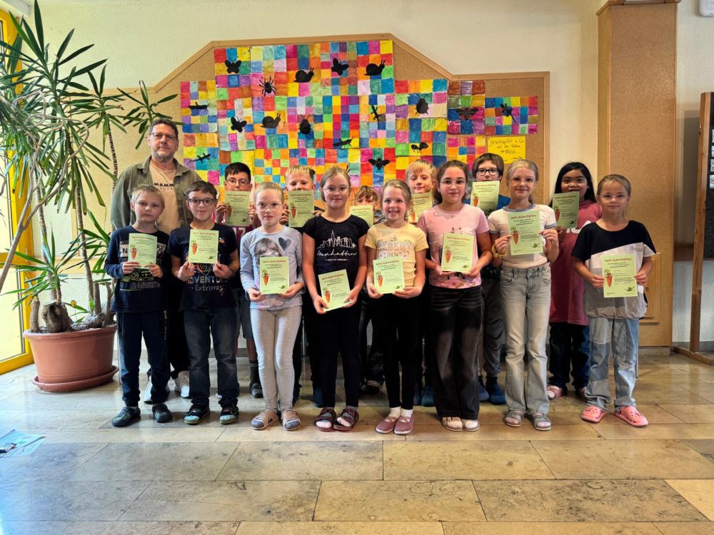 Die Kinder unserer Schule werden jedes Jahr kurz vor den Sommerferien für besondere Leistungen ausgezeichnet. Die fleißigsten Leser, die Helfer auf dem Acker, die besten Sportler und Kinder, die sich durch besonderes Engagement hervortaten wurden mit Urkunden und kleinen Geschenken belohnt.