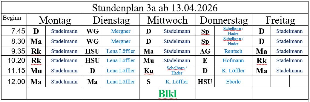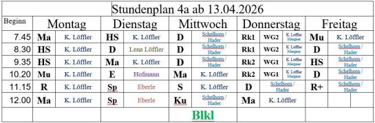 Mittwoch 7.30 - 12 Uhr